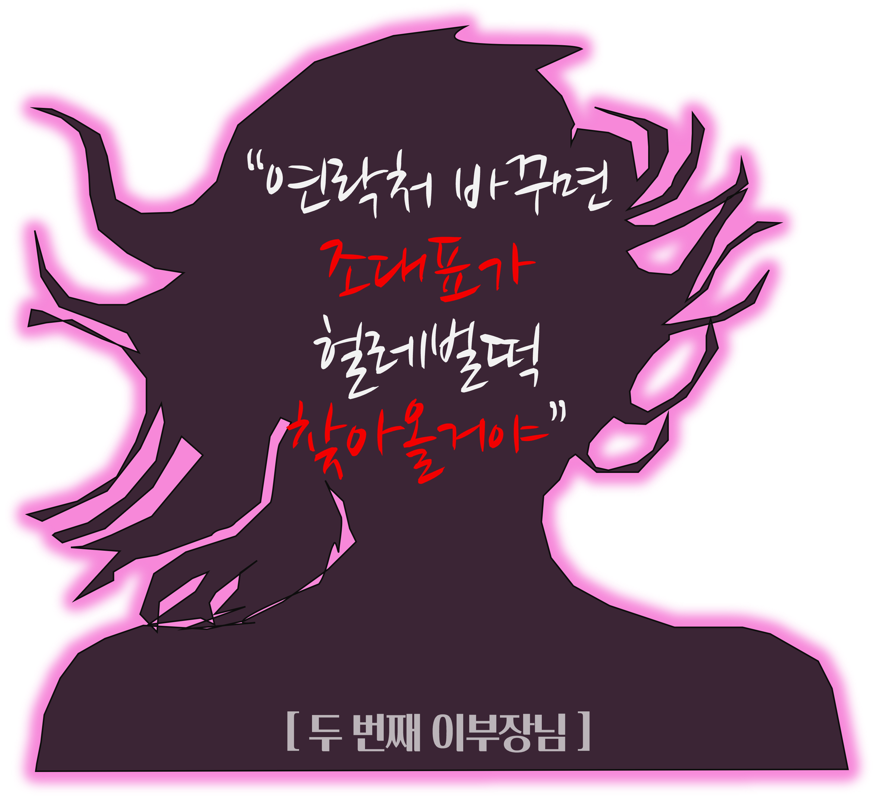 얼토당토않은 부장님의 뇌 구조에는 조 대표는 나 없으면 안 되는 사람이었는데 대표님께서 갑자기 퇴사일 제시를 단호하게 하니까 상황의 급반전을 느끼고는 본인이 쫓겨나게 생겼다 뭐 이런 비운의 주인공이 되고 싶었던 것 같습니다.