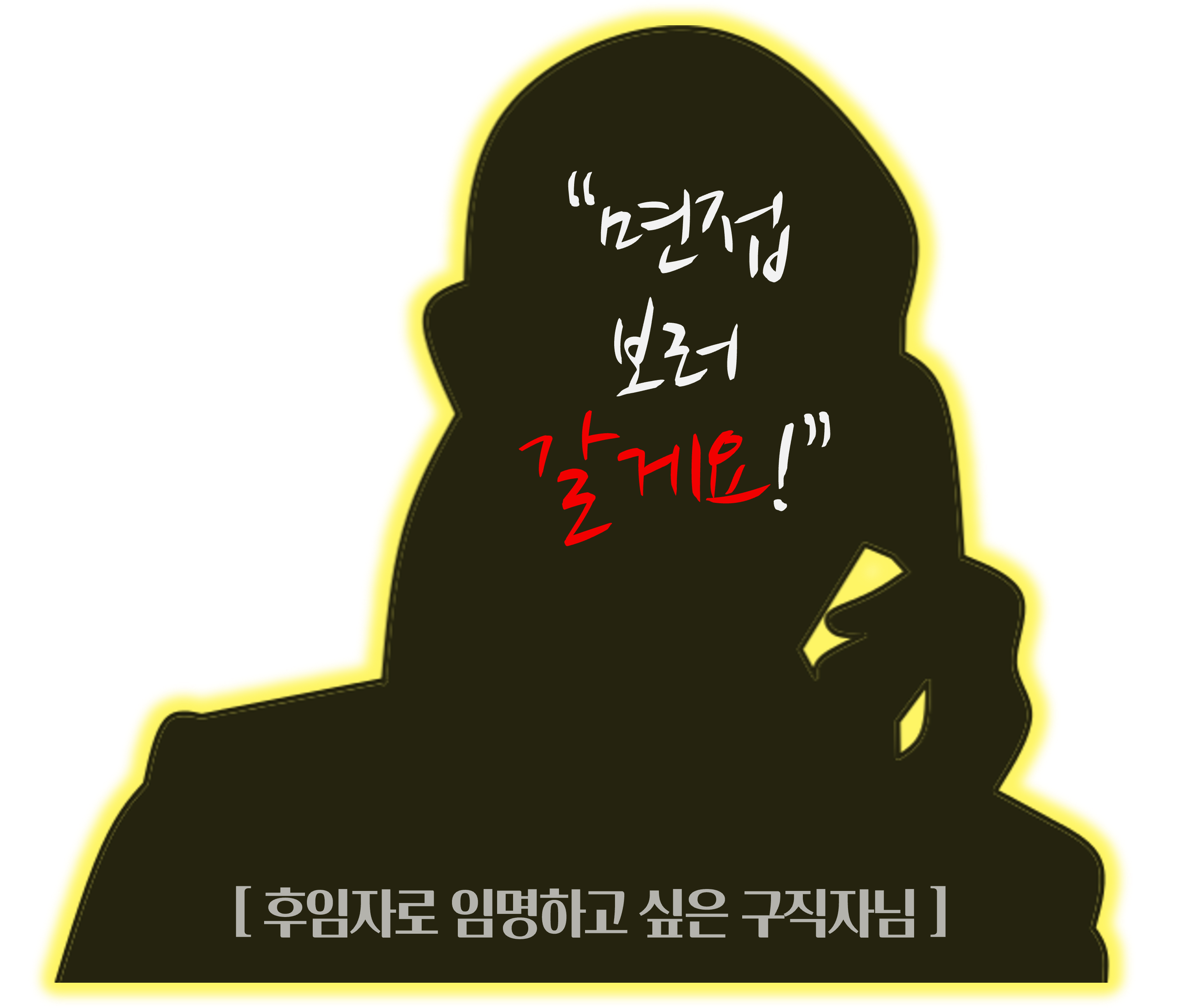 과거 대표님의 직원 채용 의사가 있다면서 없는 안일한 태도에 늘 버겁다가 결국 다 놓치고는 급하게 채용하는 모습을 몇 번 봐서 이 구직자 분은 왠지 대표님의 까탈스러움을 막아 줄 용병이라는 느낌이 강하게 들었습니다.