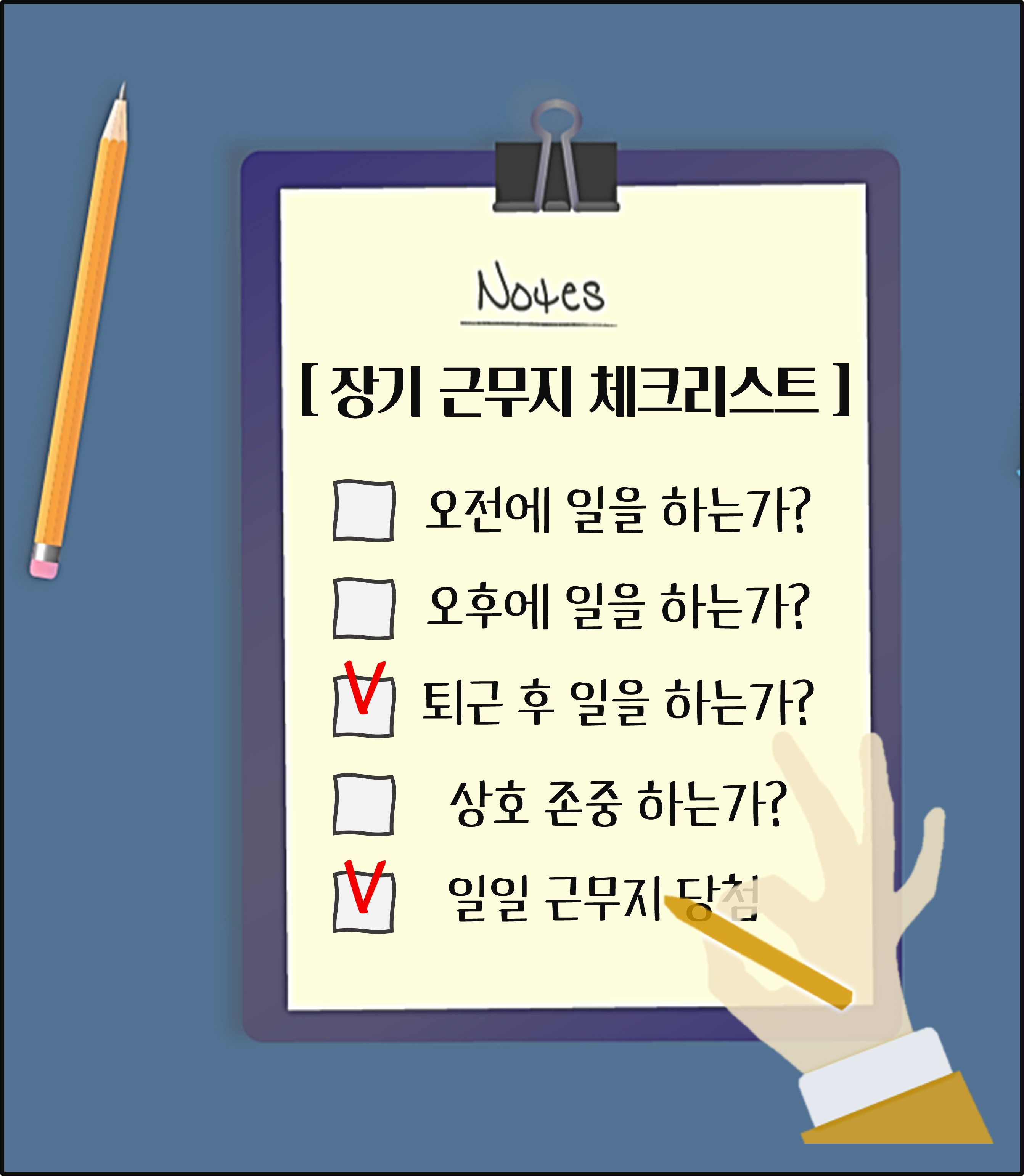 건강상의 이유로 평일에 야근이 불가능하여 혹시나 사무실 분위기를 흐릴까 싶어 지원 시에도 메모하였고 면접 당일 재차 여쭤보았습니다.
