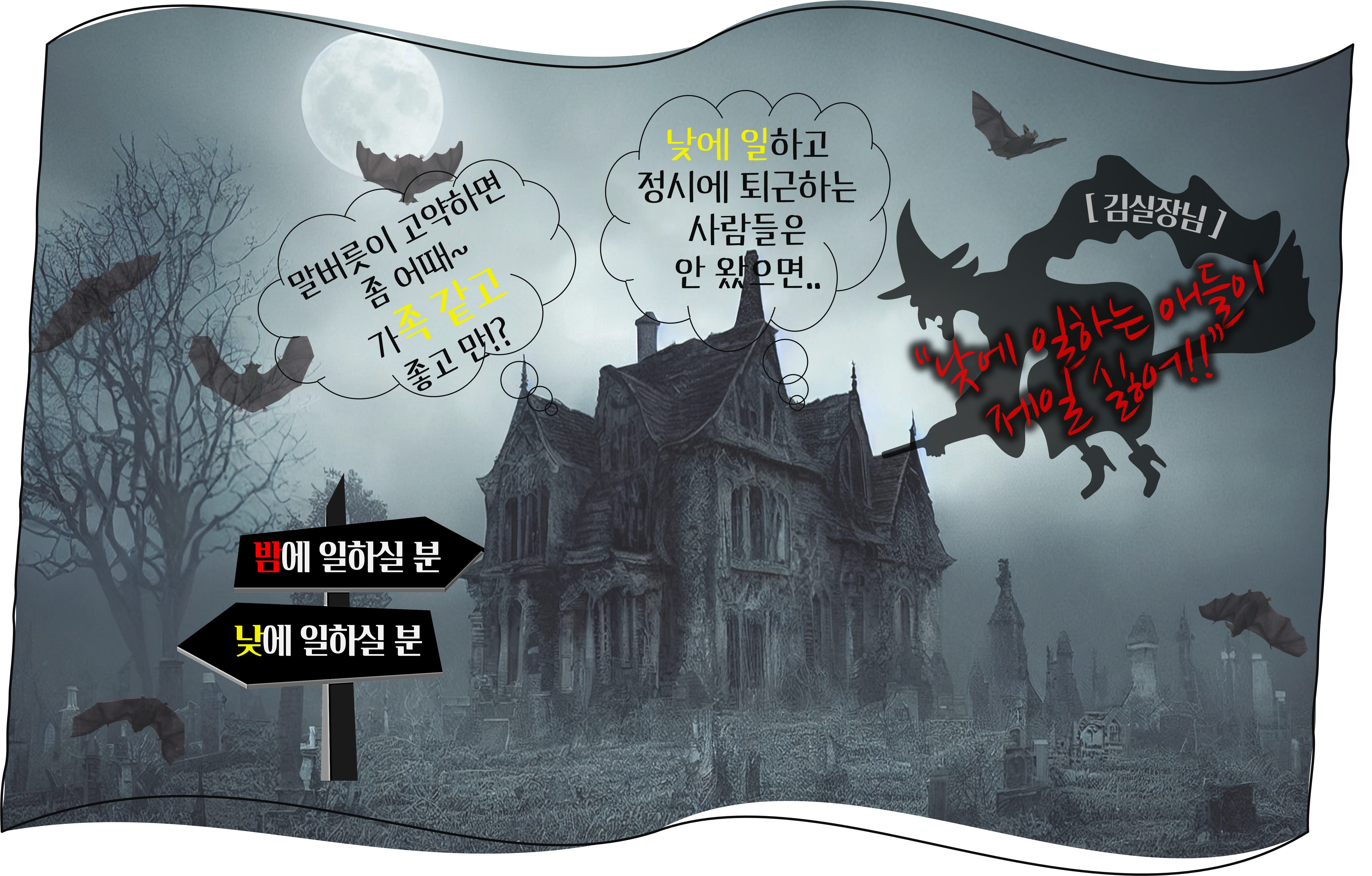 야근이 필요한 사람들이 야근을 위해 노력하죠.